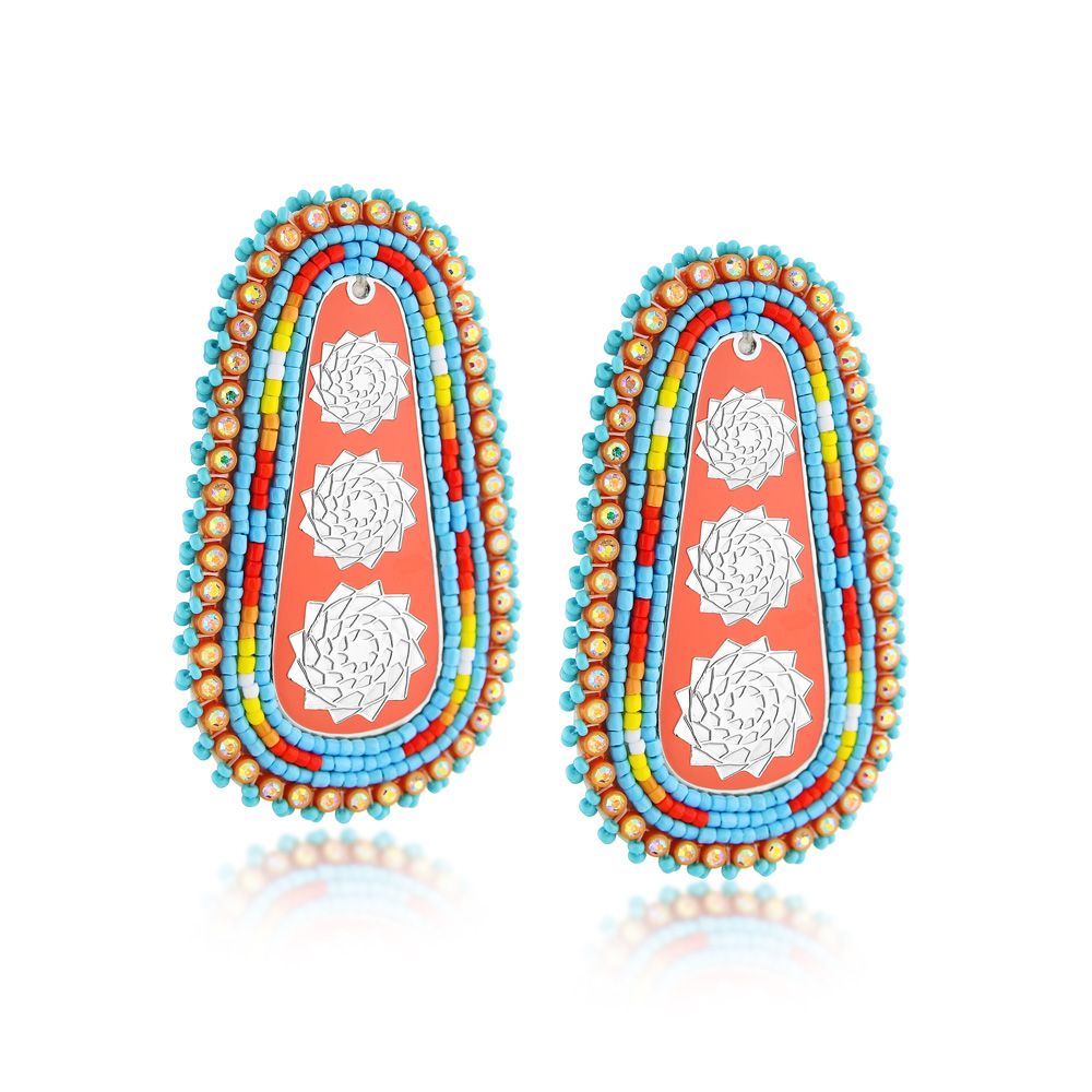 Hand Beaded Pinecone Patchwork Slab  Earrings Coral-LumbeeJewelry.com