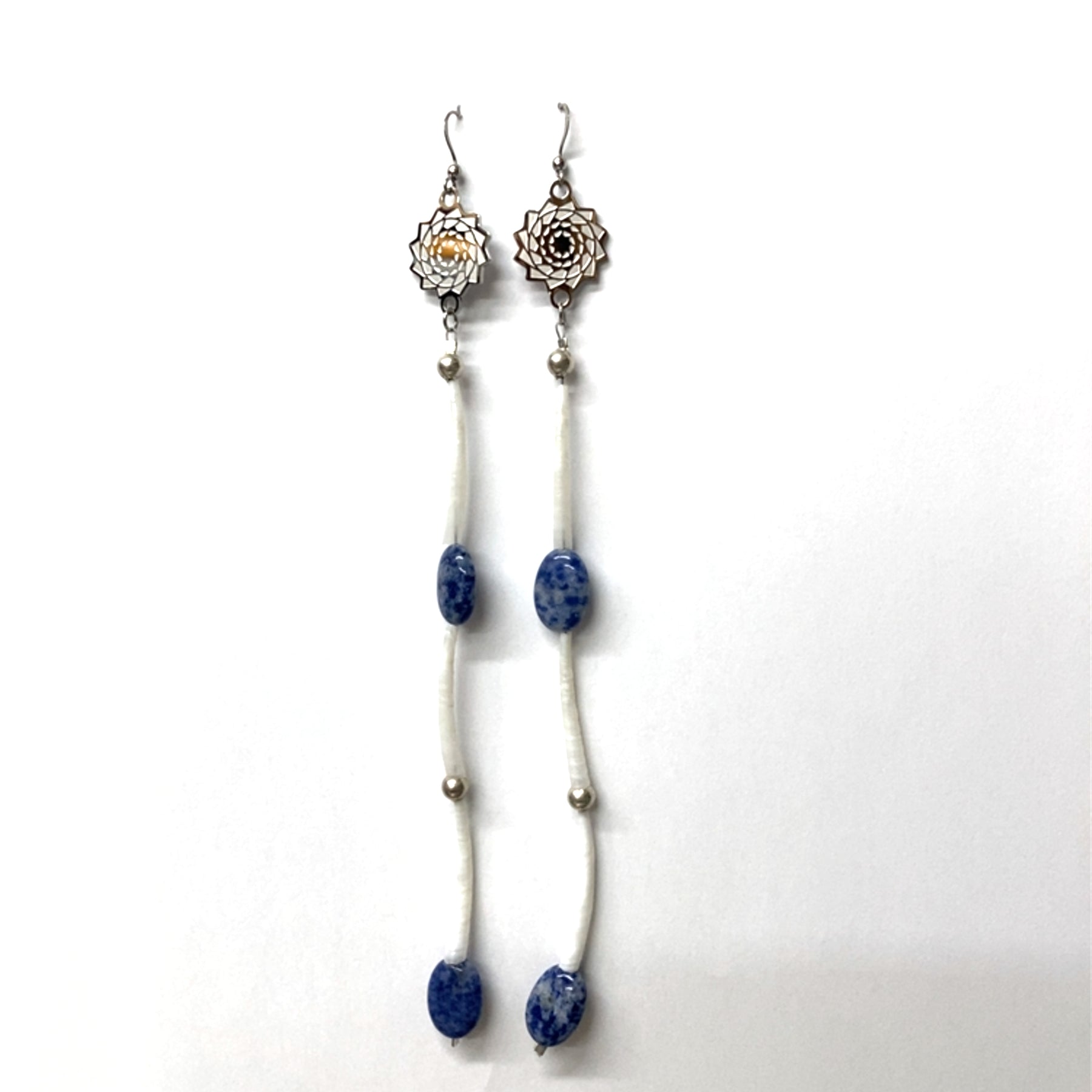Pinecone Patchwork Dentalium Earring Blue Agate