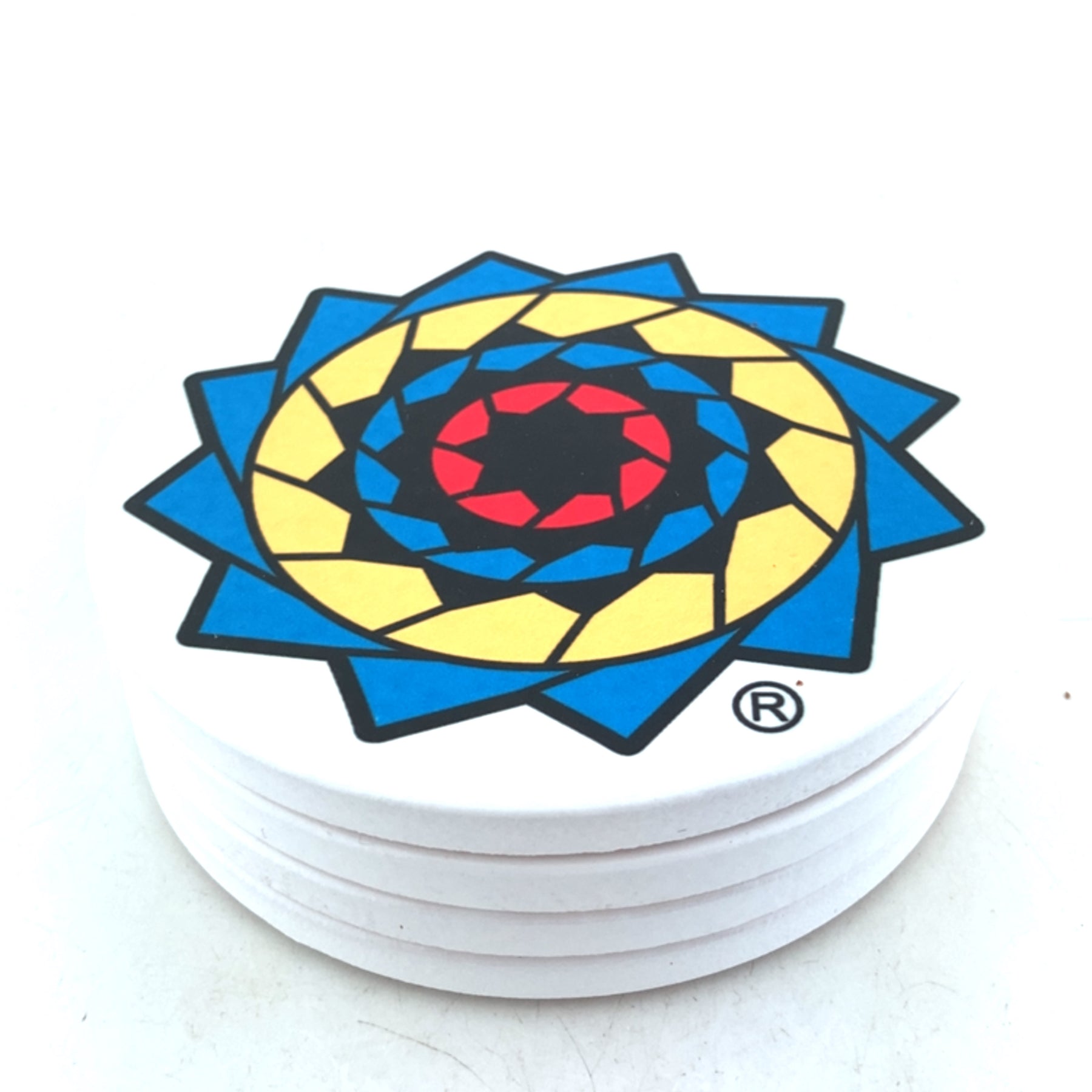 Pinecone Patchwork Ceramic Coasters. At 4 inches, each coaster fuses the beautiful Pinecone Patchwork design in a ceramic surface while making a heritage statement. Durable and unique, they're perfect for those who want to keep their heritage alive. Great affordable gift!