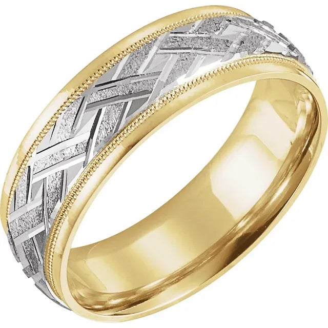 14K Yellow/White 7mm Woven-Design Wedding Band