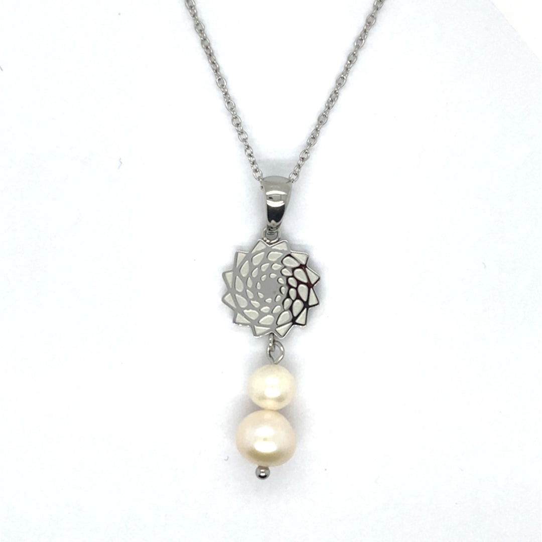 Pinecone Patchwork Freshwater Pearl Pendant White