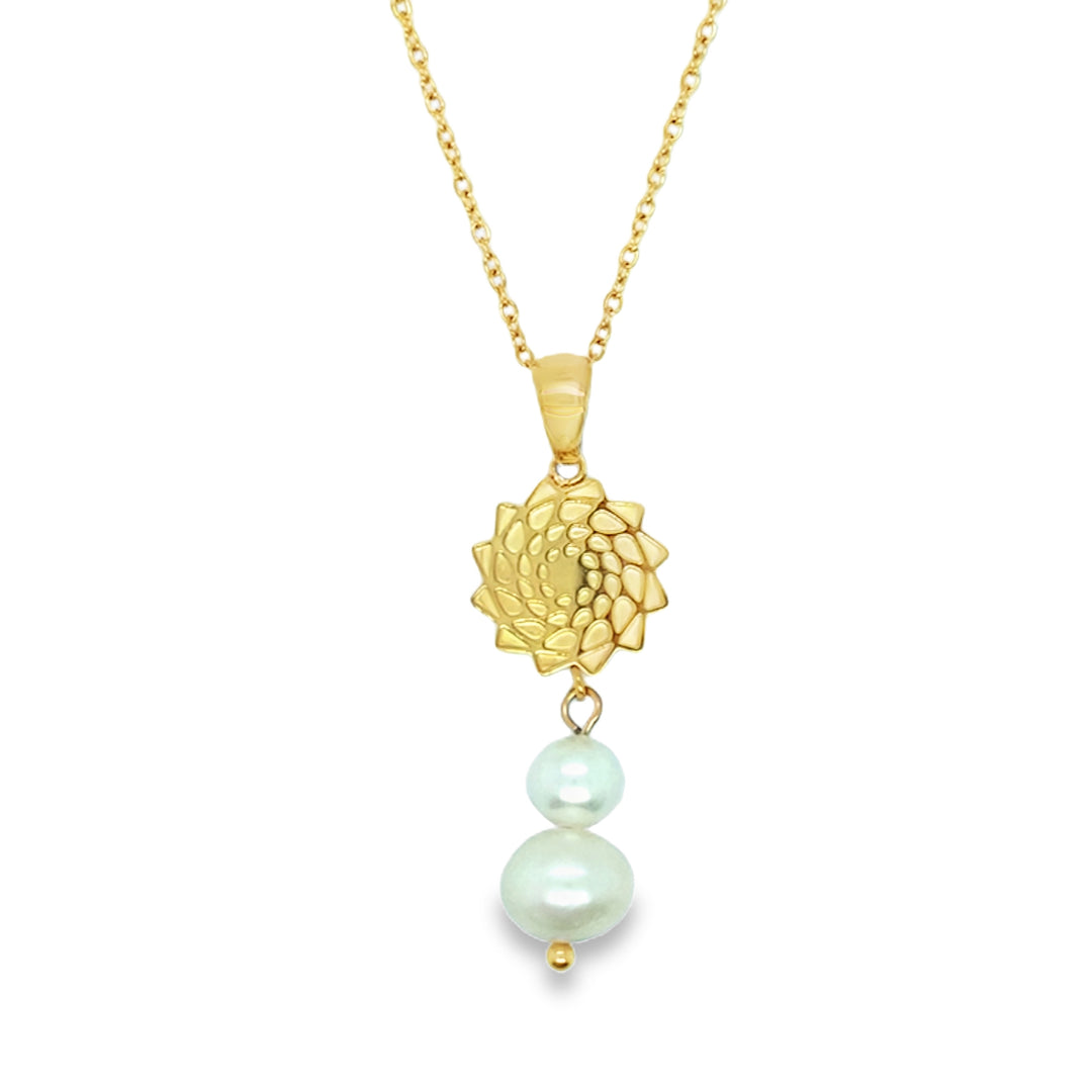 Pinecone Patchwork Freshwater Pearl Pendant Gold-Tone