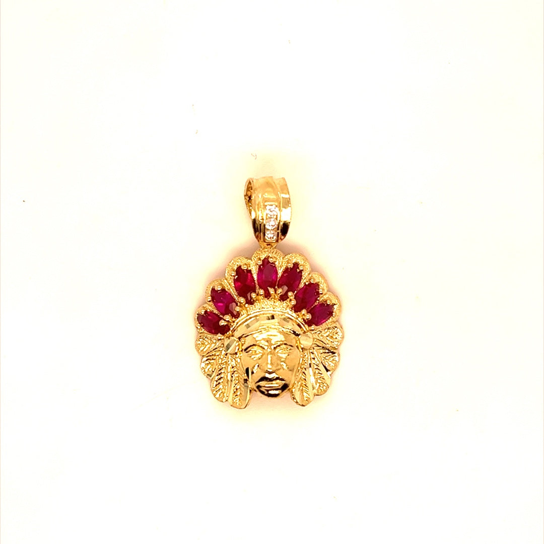 10k Indian Head w Red Stones Charm RINS&P04521C