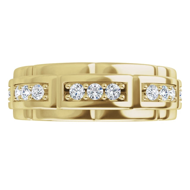 18K Yellow Gold and Diamond Mens Wedding Band