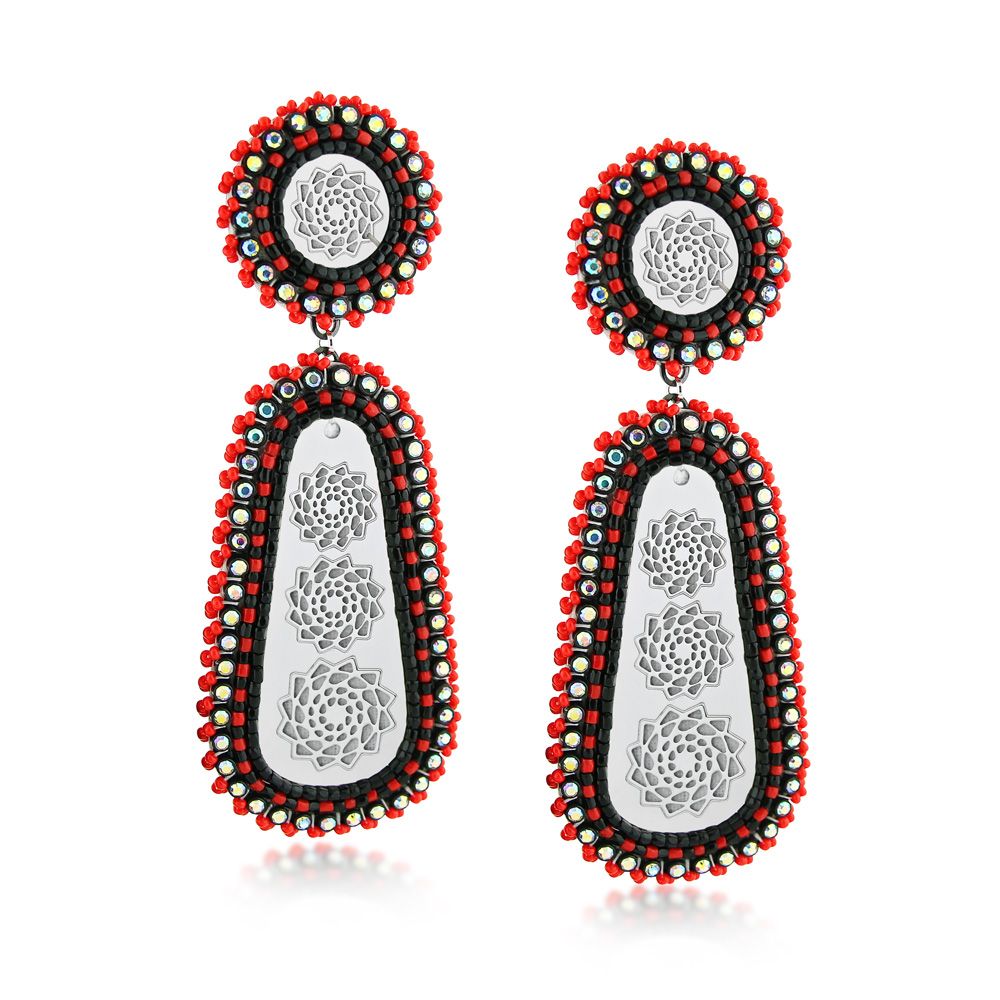 Beautiful Pinecone Patchwork Slab Earrings Accented with Applique Style Beadwork.