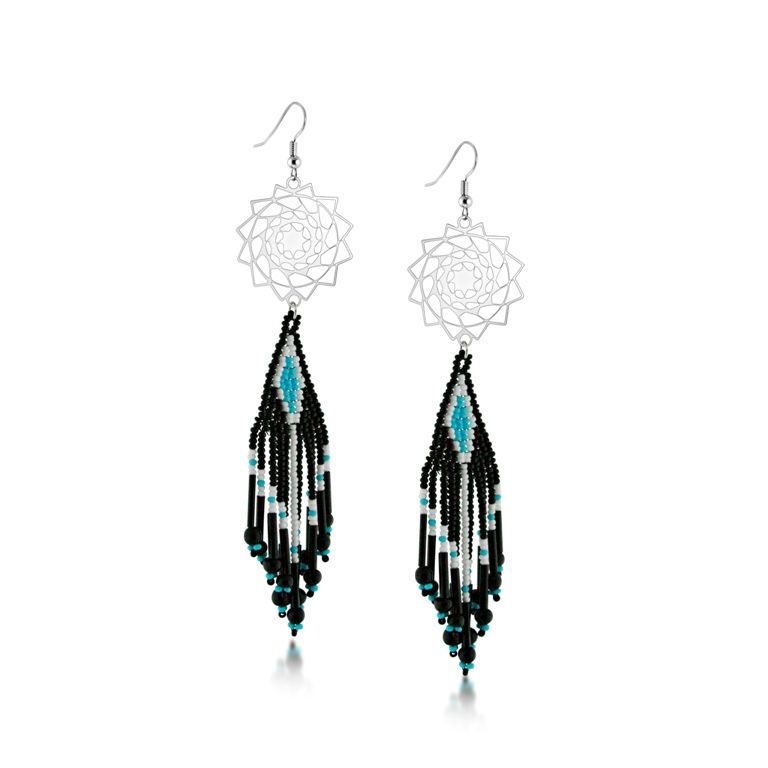 Seed Beaded Earrings Black Turquoise