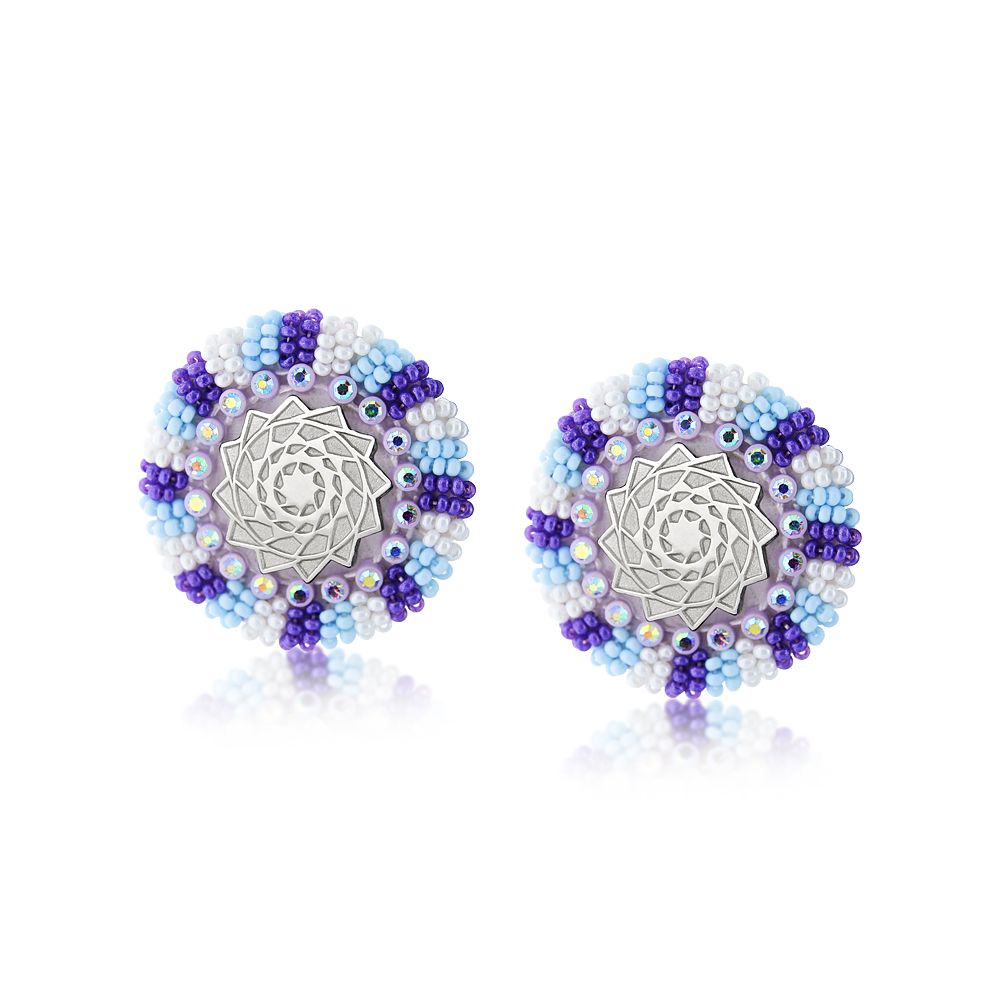 Beautiful Pinecone Patchwork Slab Earrings Accented with Applique Style Beadwork.