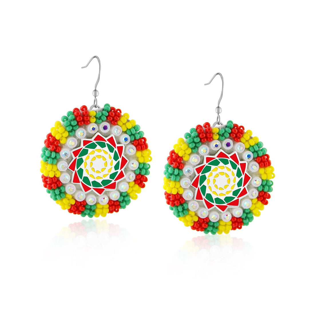 Beautiful Pinecone Patchwork Slab Earrings Accented with Applique Style Beadwork.