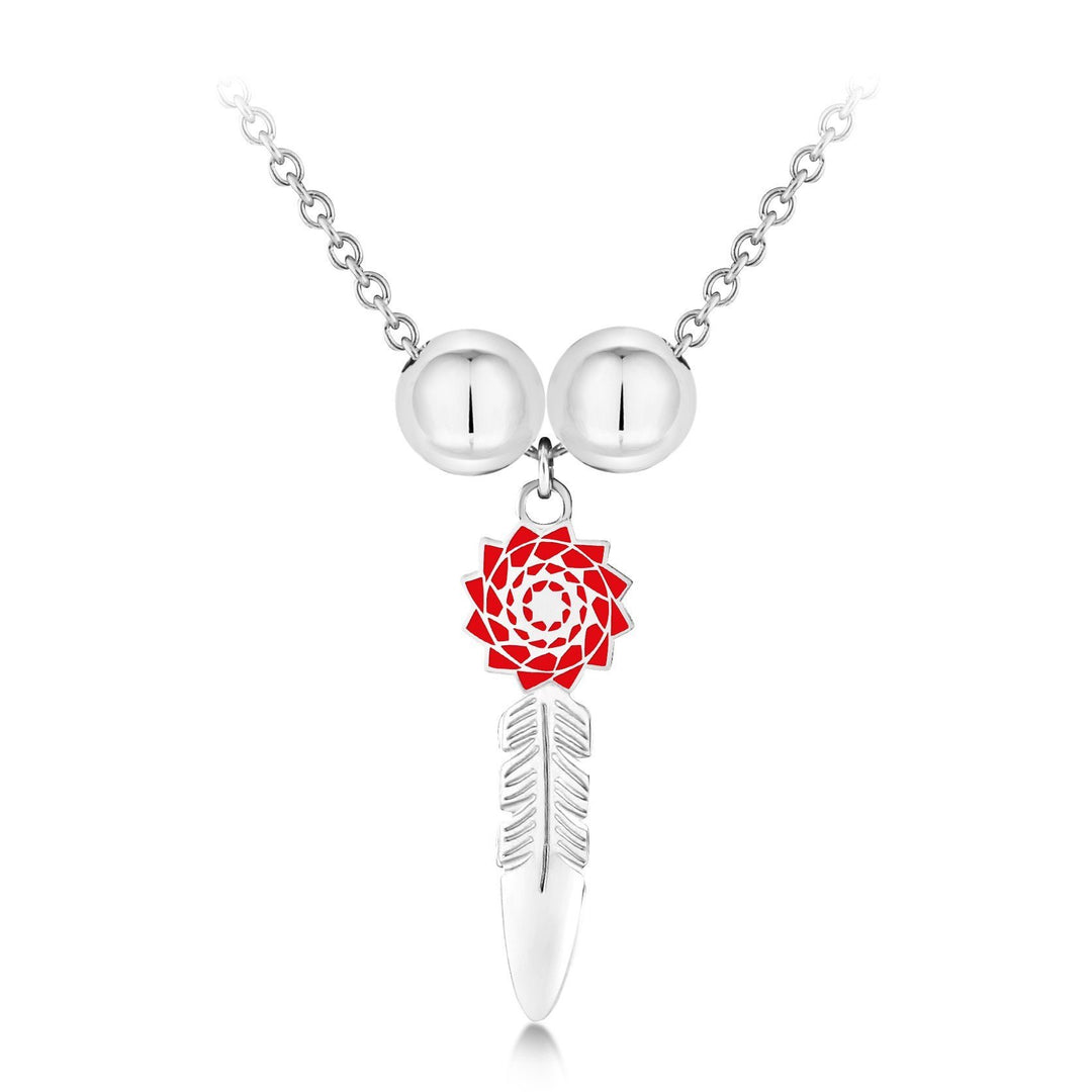(July) Pinecone Patchwork Birthstone Feather necklace two beads
