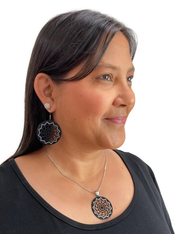 Pinecone Patchwork Black Disc Necklace-LumbeeJewelry.com
