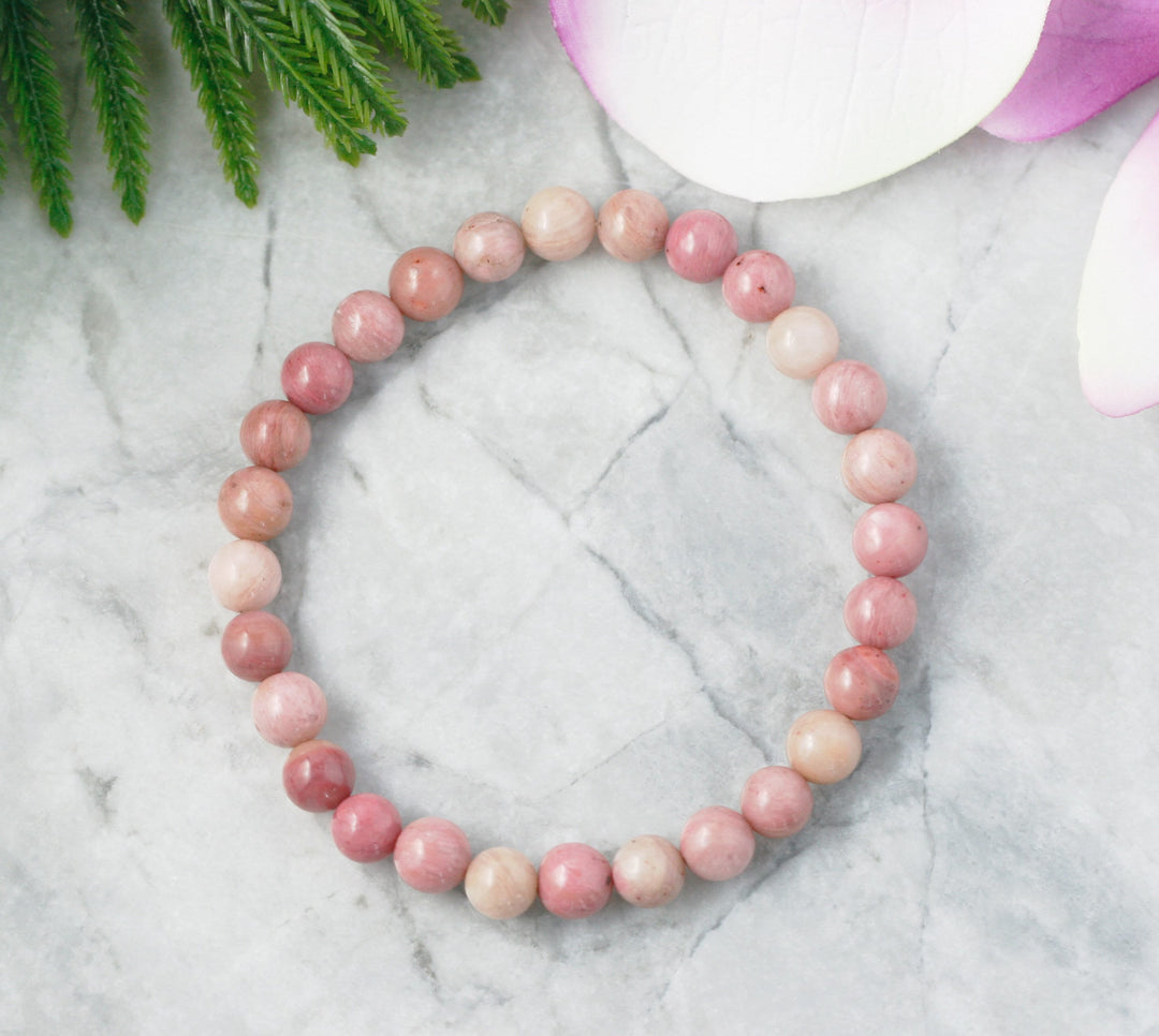 Experience the soothing feel of our Pink Rhodonite Stretch Bracelet. Made with beautiful pink rhodonite 4mm stones, this bracelet stretches to fit comfortably on your wrist. Enhance your style while also harnessing the calming, healing powers of this stunning crystal. A perfect addition to your jewelry collection.