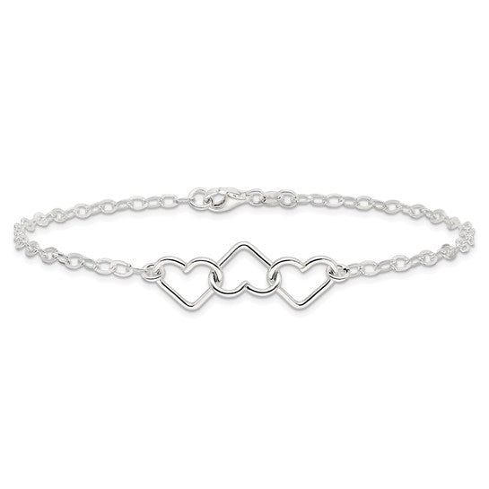 Sterling Silver 10inch Solid Polished Fancy Heart Link Anklet.