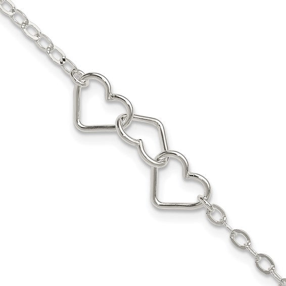 Sterling Silver 10inch Solid Polished Fancy Heart Link Anklet