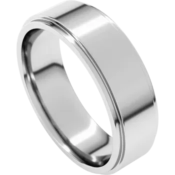 Expertly crafted in sterling silver, this 6mm wide wedding band boasts a unique stepped edge design for a modern touch. Designed for all-day comfort, its sleek silhouette is perfect for everyday wear or special occasions. Elevate your style and symbolize your love with this sophisticated wedding band.